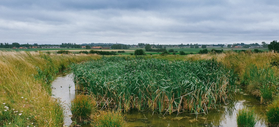 Een verrassende en interessante plek blijkt het nooit voltooide Kanaal Ieper-Komen, dat de IJzer met de Leie had moeten verbinden. Door onder meer de bodemgesteldheid en WW1 is dat er niet gekomen, maar er zijn stukken van bewaard – een gedeelte los, verderop ook een bekender stuk in het Provinciaal Domein Palingbeek.
