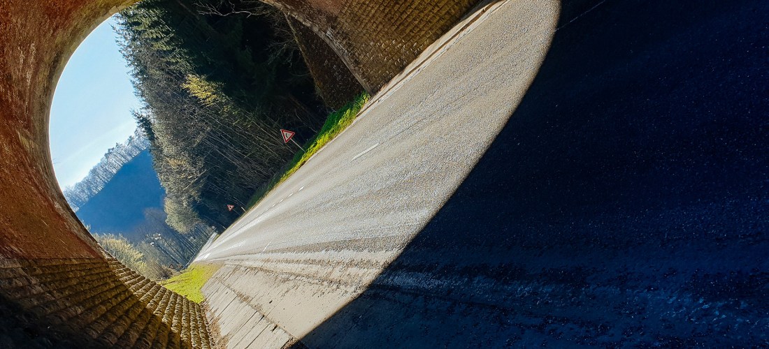 In Herbeumont wijk ik van de route. Van de schaduw onder een brug maak ik een ❤tje voor het thuisfront.