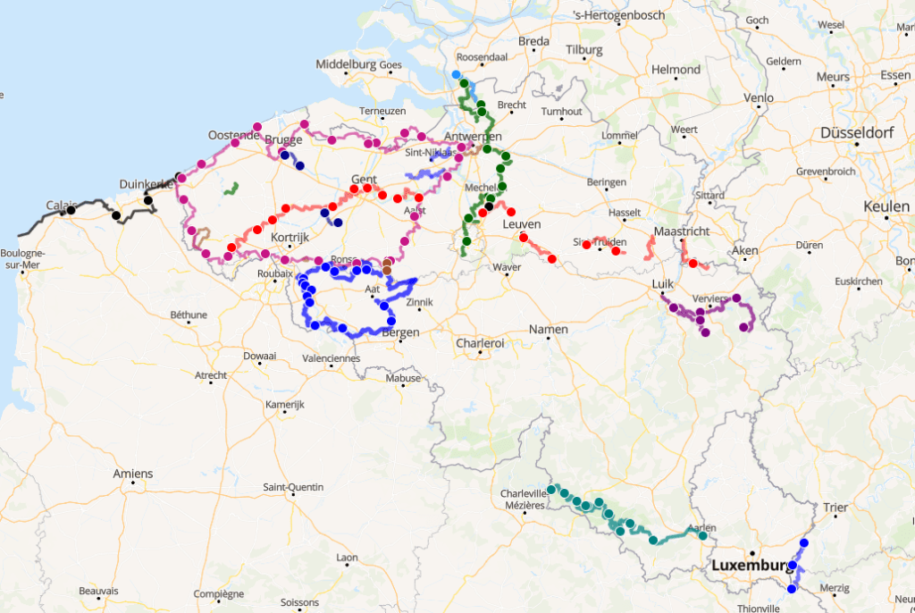 De GR5A, de GR123 en het Belgische deel van de GR16 heb ik intussen integraal gedaan, maar ik ben verder bezig aan de GR12, de GR128, de GR573 én de Streek-GR Waas- en Reynaertland. Beetje veel hooi op de vork 🙂 Ook in het buitenland was ik onderweg: de GR132 op La Gomera, de GR131 dwars over de Canarische Eilanden, en – dichter bij huis – de GR120, langs de Noord-Franse kust.