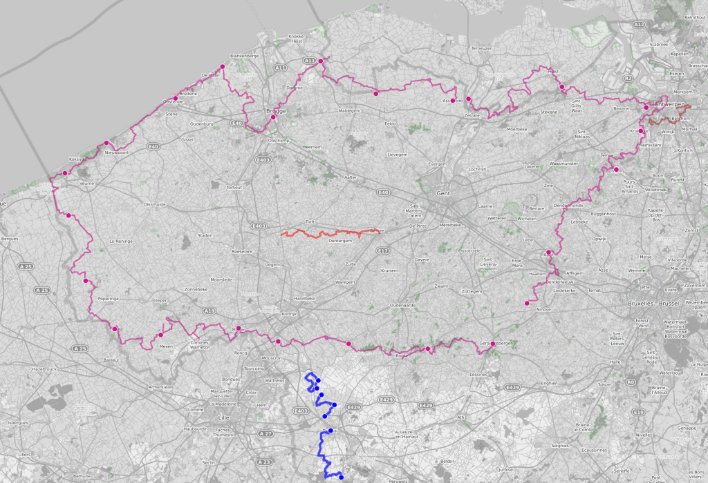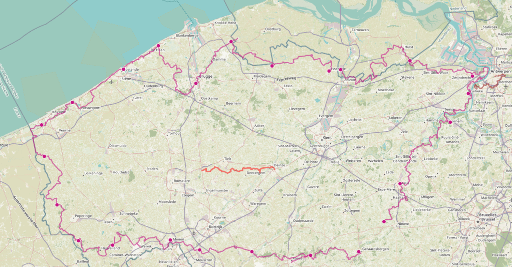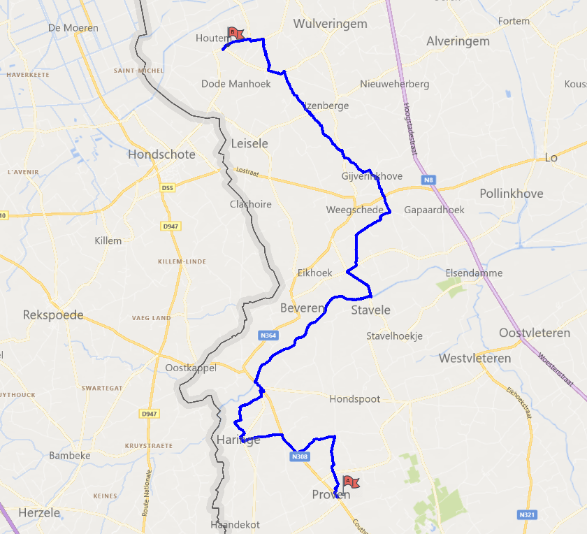 Voor Paasmaandag 2021 voorspelt het KMI een regenzone, buien, hagel, sneeuw en rukwinden: ideaal inleefweer voor de Westhoek dus. Om praktische redenen spreek ik af met collega Nico aan het Bezoekerscentrum van domein de Palingbeek, waar ik bij hem instap om samen naar het centrum van Moorslede te rijden. Over onze terugtocht van zo’n 30 km lang doen we uiteindelijk ruim vijf en een half uur effectief.