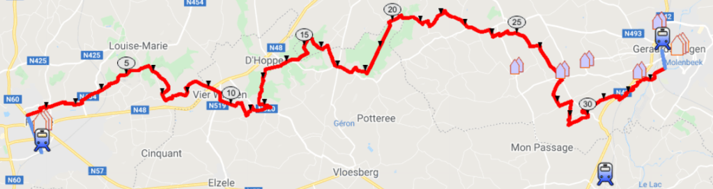Daar ongeveer heb ik afgesproken met Near-Native Companion, vriend in donkere dagen, die me na een vorige etappe in het Waasland ook vandaag een eind zal vergezellen. Het doet goed elkaar terug te zien.